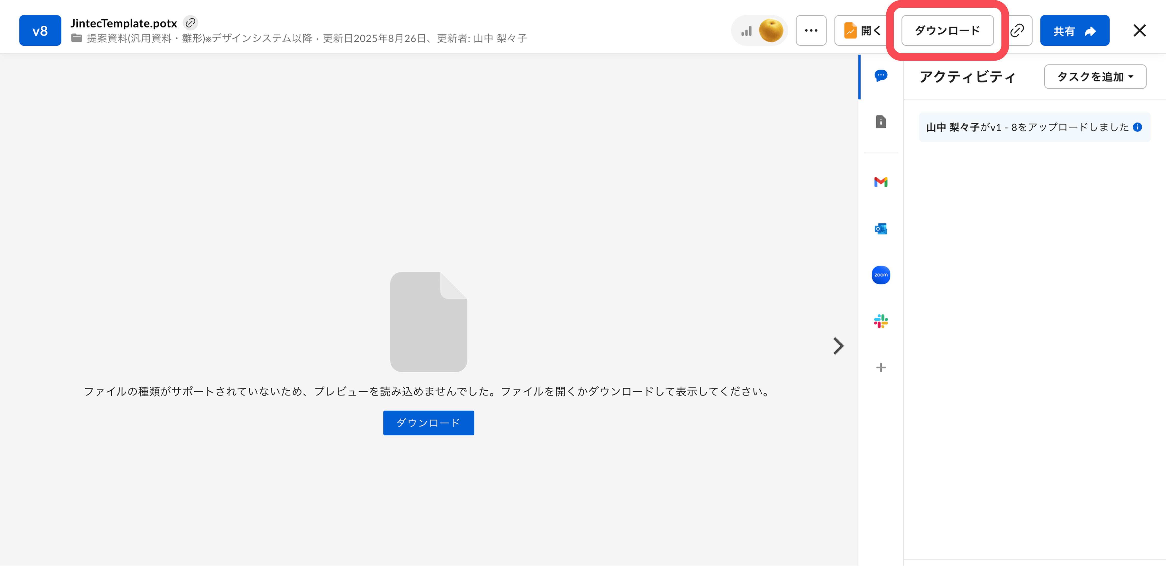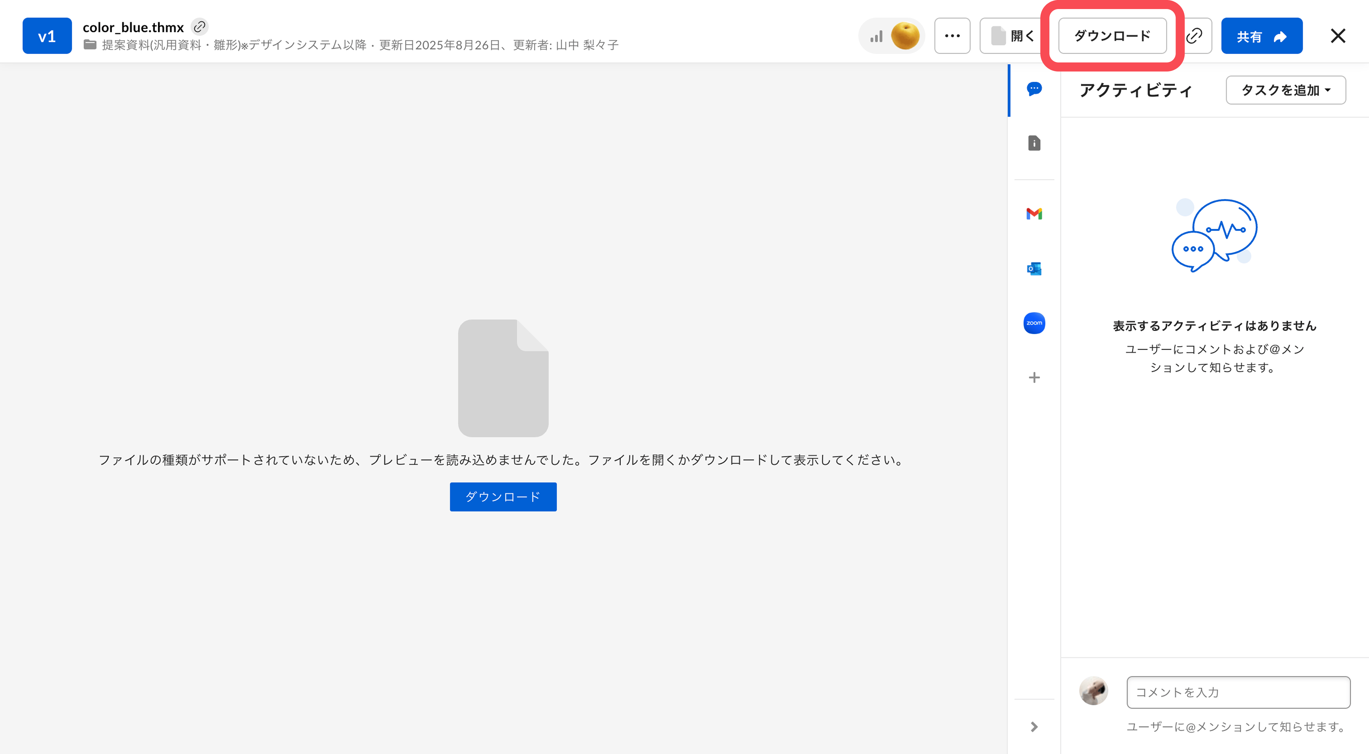 Box のリンクが開くので、[ダウンロード]ボタンを押してください。